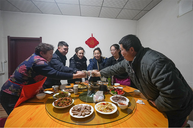 第二天,徐乃超和李文娜邀請周邊牧民一同到警務(wù)室過年,在歡樂祥和的氛圍中他們度過了一個別樣的新年。