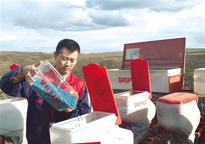 “全區(qū)農(nóng)村牧區(qū)青年致富帶頭人”李慶國(guó)在田間查看種子。