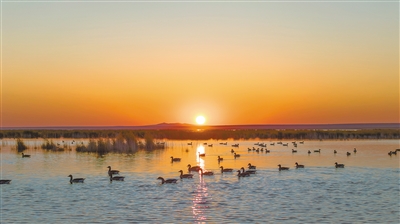 呼倫貝爾市新巴爾虎右旗烏蘭諾爾濕地迎來候鳥回歸潮。