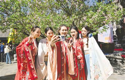 4月23日,身著漢服的博物館講解員和丁香花合影。當日,呼和浩特市將軍衙署舉辦“古風韻解丁香結,衙署藏珍溯文脈”將軍衙署博物館第十一屆丁香季主題活動,活動將持續(xù)至4月27日。本屆丁香季主題活動依托古風場景,通過設置豐富多彩的活動內容,讓游客在欣賞丁香花的同時,深入了解將軍衙署的歷史。記者 王磊 攝