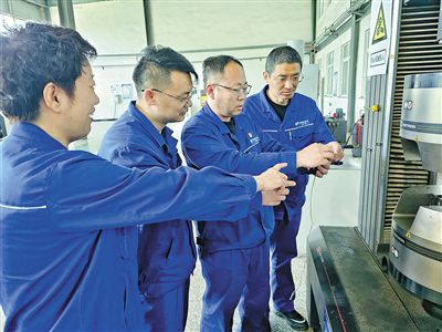 包鋼股份技術(shù)中心科研團隊就出口鋼軌物理性能滿足美標(biāo)檢驗要求進(jìn)行研討分析。