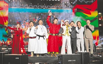 本場(chǎng)演出特別邀請(qǐng)了孟庭葦、民樂(lè)大師方錦龍以及齊峰、烏蘭圖雅、呼斯楞、云飛、傲日其愣、安達(dá)組合、額爾古納樂(lè)隊(duì)、阿木古楞、阿古達(dá)木等歌手同臺(tái)獻(xiàn)藝。17組節(jié)目各具特色,民樂(lè)合奏《北疆歡歌》將馬頭琴與古箏、琵琶、二胡等曲風(fēng)融合,展開(kāi)一場(chǎng)跨越地域與民族的藝術(shù)對(duì)話;情景表演《黃河千鼓·綢舞山河》,嗩吶、演唱、腰鼓、綢舞相結(jié)合,演繹了“黃河初醒”到“萬(wàn)流歸?!钡暮肋~,讓觀眾看見(jiàn)黃河的“形”,聽(tīng)見(jiàn)黃河的“魂”,觸摸黃河的“脈”;《敖包相會(huì)》《父親的草原母親的河》《母親》《我和草原有個(gè)約定》等耳熟能詳?shù)母枨層^眾們重溫經(jīng)典;500架無(wú)人機(jī)在空中進(jìn)行表演,“歌游內(nèi)蒙古”“蒙古馬”……每變幻一次圖形,都引來(lái)現(xiàn)場(chǎng)觀眾陣陣歡呼;黃河與長(zhǎng)城交匯的舞美設(shè)計(jì)、視頻光影的視覺(jué)展現(xiàn),將內(nèi)蒙古的自然景觀、人文風(fēng)情一一呈現(xiàn),讓觀眾在領(lǐng)略北疆文化魅力的同時(shí),激發(fā)出對(duì)這片土地的熱愛(ài)與向往。
