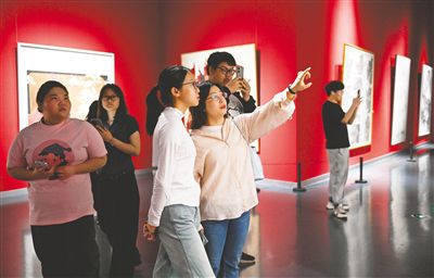 6月22日,觀眾在內(nèi)蒙古美術(shù)館參觀民族美術(shù)作品。近日,為期1個(gè)月的第六屆中國(guó)民族美術(shù)作品展覽巡展(呼和浩特站)在內(nèi)蒙古美術(shù)館開展,展出近300件作品,涵蓋中國(guó)畫、油畫、版畫等多個(gè)門類,全方位展現(xiàn)了各民族多彩的生活面貌。記者 王磊攝