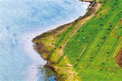 濕地草灘、天然牧場(chǎng)、萬(wàn)畝林地……烏蘭察布市興和縣澇利海以2360畝橢圓形湖泊為核心,串聯(lián)起風(fēng)光優(yōu)美的生態(tài)矩陣,吸引不少市民游客前來(lái)游玩,成為京津冀地區(qū)及周邊省市區(qū)游客“反向旅游”的新晉網(wǎng)紅打卡地。(記者 王曉博攝)