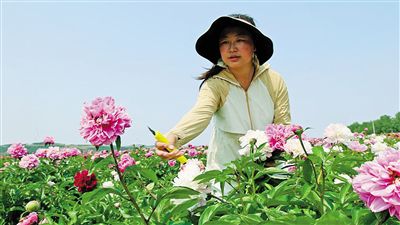 芍藥園內(nèi),工人們正在忙著切花。這些被精心挑選和修剪的芍藥花,打好包裝后將被送往扎蘭屯成吉思汗機場,坐上飛機運往昆明。