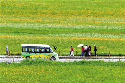 7月26日,伴隨著蒙蒙細(xì)雨,游客在錫林郭勒盟正藍(lán)旗境內(nèi)的金蓮川草原欣賞盛開的金蓮花。盛夏時節(jié),金蓮川草原變成了一片金色的海洋,美不勝收,吸引了大批游客前往觀賞。該旗借機推出文藝演出、搏克競技、低空飛行等特色活動引客留客,讓游客更好地感受草原風(fēng)情。記者 王曉博 攝