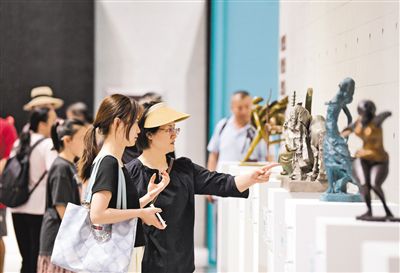 8月3日,觀眾正在欣賞雕塑作品。第二屆呼和浩特國際雕塑藝術(shù)展于8月2日在呼和浩特市雕塑藝術(shù)館開展,展覽匯集了全球20個(gè)國家、80位藝術(shù)家的95件精品力作,作品涵蓋青銅、石材、復(fù)合媒材等多元材質(zhì),全面展現(xiàn)了世界雕塑藝術(shù)的多元魅力。記者 孟和朝魯攝