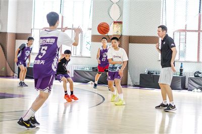 8月6日,一名塞爾維亞籍籃球教練在呼和浩特市玉泉區(qū)制鎖廠勱立體育文化產(chǎn)業(yè)園籃球中心指導孩子們進行籃球訓練。勱立體育文化產(chǎn)業(yè)園是城市更新項目,由閑置的老廠房轉變?yōu)槌錆M活力的運動場地,暑假期間,不少學生選擇來這里參加體育運動。記者 王曉博攝