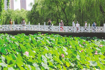 8月17日,在呼和浩特市滿都海公園,市民、游客在園中觀賞荷花。近年來,呼和浩特市園林部門加大投入,通過個性化設(shè)計,對不同定位的城市公園進行精細化打造,豐富生態(tài)景觀體系,讓市民、游客欣賞園林美景,感受宜居生活。記者 懷特烏勒斯攝