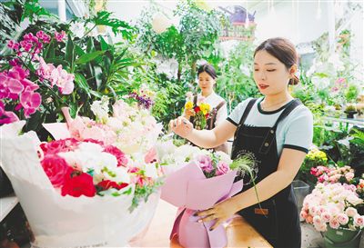 8月27日,呼和浩特市一家花店的工作人員正在打包花束。8月29日是中國(guó)傳統(tǒng)七夕節(jié),節(jié)日來臨之際,呼和浩特的大街小巷彌漫著甜蜜的氣息,“浪漫經(jīng)濟(jì)”逐步升溫。記者 孟和朝魯攝