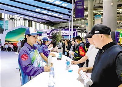 8月28日,中蒙博覽會現(xiàn)場,志愿者在咨詢臺為參展民眾提供服務(wù)。據(jù)了解,此次參加中蒙博覽會的320名青年志愿者經(jīng)過專業(yè)培訓(xùn),在博覽會上發(fā)揮自己的作用,成為了一道獨(dú)特的風(fēng)景。記者 潘佳慧攝