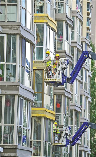初秋,呼和浩特市賽罕區(qū)馨苑小區(qū)內(nèi)機器轟鳴,施工人員正有序進行路面平整和外墻修繕作業(yè),工程車輛往來穿梭,一派熱火朝天的改造景象。