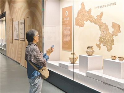 9月12日,觀眾在內(nèi)蒙古博物院欣賞展品。當(dāng)日,內(nèi)蒙古博物院上新“灼灼其華——甘肅彩陶文化展”,展覽通過4大單元、120余件珍貴彩陶,系統(tǒng)梳理了彩陶文化藝術(shù)演變歷程,為首府市民帶來一場內(nèi)涵豐富的文化盛宴。記者 王麗紅 攝