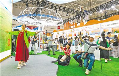 內(nèi)蒙古展區(qū)以“歌聲相伴 愉悅旅行”為主題,展區(qū)面積達204平方米,精心規(guī)劃了文潤北疆、暢游北疆、印象北疆、數(shù)字融合、歌游內(nèi)蒙古、內(nèi)蒙古味道六大板塊。遴選具有紅色文化、草原文化、黃河文化等代表性的優(yōu)質(zhì)文旅產(chǎn)品,集中展現(xiàn)內(nèi)蒙古獨特的自然風光和厚重的文化底蘊。