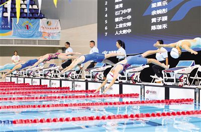 9月19日,運(yùn)動(dòng)員正在比賽。當(dāng)日,全國(guó)體育傳統(tǒng)學(xué)校游泳聯(lián)賽在呼和浩特體育中心舉行。本次賽事匯聚全國(guó)140所體育傳統(tǒng)名校,約1300名青少年泳壇精英,角逐50米至200米個(gè)人全泳姿及多項(xiàng)混合接力項(xiàng)目獎(jiǎng)牌。記者 孟和朝魯攝