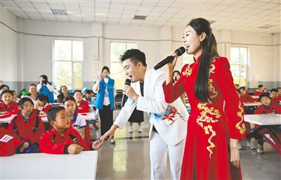 9月29日,內(nèi)蒙古藝術(shù)學(xué)院烏蘭牧騎紅色精神宣講團(tuán)成員在演唱《掛紅燈》。當(dāng)日,內(nèi)蒙古藝術(shù)學(xué)院烏蘭牧騎紅色精神宣講團(tuán)走進(jìn)呼和浩特市土默特左旗臺閣牧鎮(zhèn)栽生小學(xué),開展“兩彈一星”精神主題宣講與惠民展演,為栽生小學(xué)的師生帶來了一場別開生面的愛國主義與科學(xué)精神教育課。記者 王磊攝