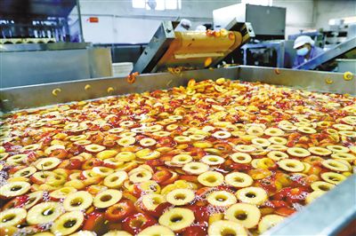 作為興安盟沙果產(chǎn)業(yè)的重要參與主體,恒佳果業(yè)專注于沙果干、沙果脯的加工生產(chǎn)。走進(jìn)公司的生產(chǎn)車間,工人們正有條不紊地操作設(shè)備,新鮮沙果經(jīng)過(guò)嚴(yán)格分揀、清洗、切片、蒸煮和烘干等多重工序,蛻變成色澤金黃、酸甜可口的果干和果脯,即將發(fā)往全國(guó)各地。為進(jìn)一步從源頭提升果品質(zhì)量,今年企業(yè)還免費(fèi)為簽約農(nóng)戶的果園鋪設(shè)反光膜、提供農(nóng)藥噴灑服務(wù)。