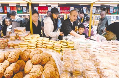 10月2日,在呼和浩特市回民區(qū)寬巷子,人們選購(gòu)傳統(tǒng)手工月餅。中秋節(jié)臨近,在呼和浩特市寬巷子美食街內(nèi),傳統(tǒng)手工月餅以獨(dú)有的口味受到首府市民和游客的青睞。記者 孟和朝魯攝