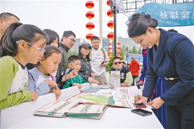 10月3日,工作人員在內(nèi)蒙古博物院廣場為現(xiàn)場觀眾集章打卡。2025年國慶黃金周期間,呼和浩特市文化旅游廣電局在內(nèi)蒙古博物院北廣場推出“遇見青城”特裝展區(qū)系列宣傳活動,通過社教體驗、文藝演出、集章打卡等多種形式,全面展示呼和浩特深厚的文化底蘊與豐富的文旅、文博資源。記者 王磊攝