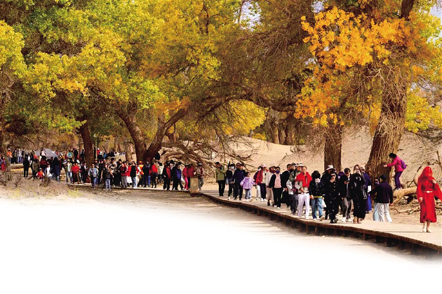 金秋胡楊美景吸引全國各地游客紛至沓來。