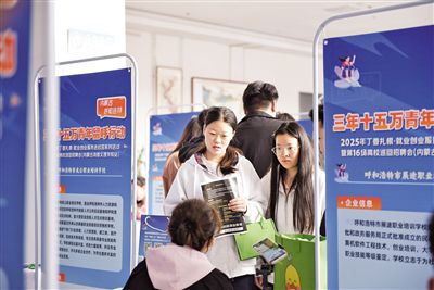 10月12日,求職者在招聘會(huì)上向心儀企業(yè)認(rèn)真詢問(wèn)崗位要求。當(dāng)日,2025年呼和浩特市丁香扎根·就業(yè)創(chuàng)業(yè)服務(wù)進(jìn)校園系列活動(dòng)走進(jìn)內(nèi)蒙古鴻德文理學(xué)院,60家企業(yè)提供2068個(gè)就業(yè)崗位。今年呼和浩特市已舉辦各類校園專場(chǎng)招聘會(huì)16場(chǎng),入校送崗4.6萬(wàn)個(gè),服務(wù)高校學(xué)子3萬(wàn)余人。記者 楊林枝 攝