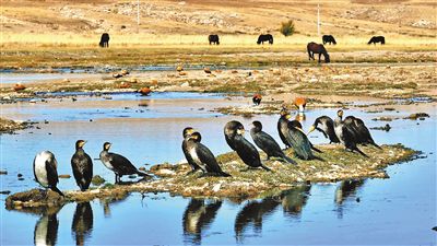初冬的包頭市達(dá)茂旗草原,是一幅動(dòng)人的“綠底金邊”畫卷。冰草在晴空下泛著金光,牛、馬、駱駝、羊徜徉其間,襯托出草原的靜謐。成群的鸕鶿、赤麻鴨等野生鳥兒,嬉戲、休憩在艾不蓋河邊濕地,為這片草原增添了歡騰氣息……曾經(jīng)刺目的沙化地已被茂密植被覆蓋——這是草原生態(tài)修復(fù)最直觀的答卷。