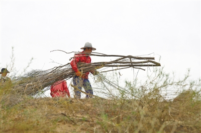 搬運(yùn)沙柳。