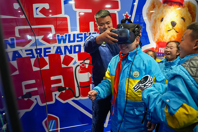 實(shí)操體驗(yàn)區(qū)則成為青少年提升應(yīng)急技能的“實(shí)戰(zhàn)課堂”。在“模擬滅火器操作區(qū)”,消防宣傳員手把手講解干粉滅火器“提拔握壓”的使用要領(lǐng),通過1:1模擬滅火器,讓青少年在無安全風(fēng)險(xiǎn)的前提下親身實(shí)踐。最受青少年歡迎的當(dāng)屬“VR滅火逃生體驗(yàn)區(qū)”,這里配備的VR設(shè)備可模擬家庭、學(xué)校等不同場景的火災(zāi)現(xiàn)場。戴上VR眼鏡,青少年仿佛置身于濃煙彌漫的火災(zāi)環(huán)境中。
