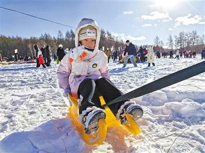 小朋友體驗冰雪娛樂項目。