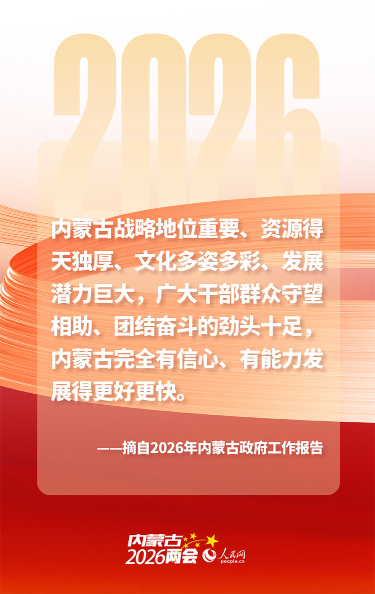 收藏2月4日上午9時(shí),內(nèi)蒙古自治區(qū)第十四屆人民代表大會(huì)第五次會(huì)議在呼和浩特開(kāi)幕。政府工作報(bào)告中的這些話語(yǔ),字字千鈞、彰顯發(fā)展決心,傳遞民生溫度,堅(jiān)定前行信心。