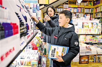 2月25日,家長帶著孩子在呼和浩特市文化商城選購文具。隨著開學臨近,中小學生迎來“備齊裝備”高峰期,線下文具與教輔采購熱度持續(xù),各商家備貨充足,全力保障學生學習用品需求,助力廣大中小學生以嶄新面貌開啟新學期的學習生活。記者 王磊攝